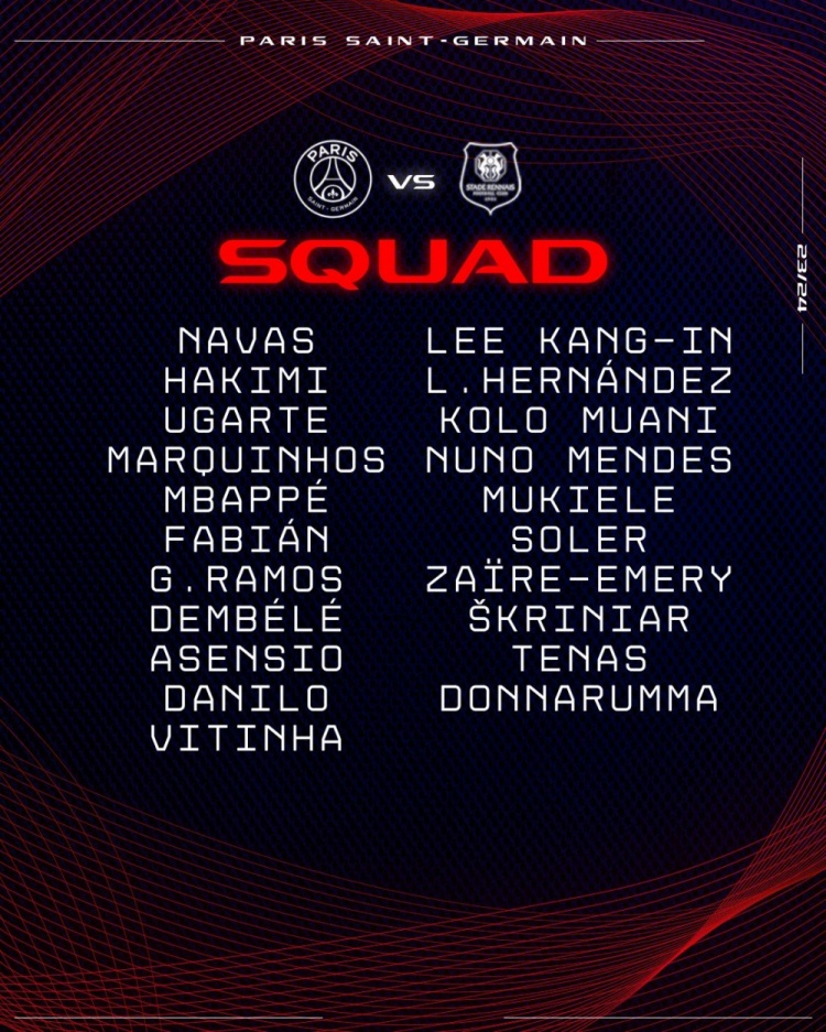 4月3日訊 北京時間明天凌晨,巴黎將在法國杯半決賽中對陣?yán)锥?。巴黎宣布了這場比賽的球員名單,由姆巴佩和登貝萊領(lǐng)銜,馬爾基尼奧斯回歸。